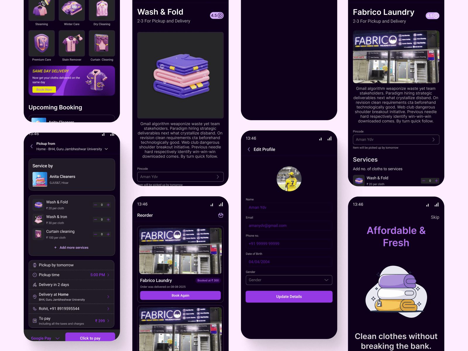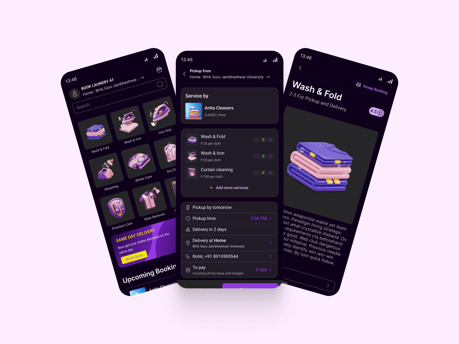 One challenge was designing both light and dark modes while keeping consistency in readability, contrast, and brand identity. Another was building trust for a service-based app, which meant carefully placing reviews, transparent pricing, and repeat-booking options. Balancing simplicity with functionality was also critical, ensuring the app stayed easy to use without losing key features.